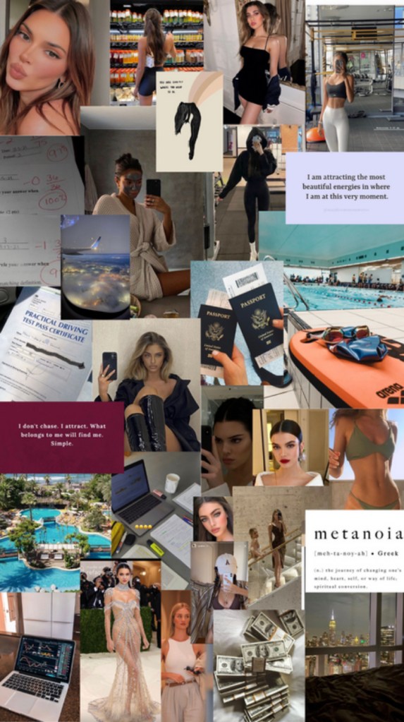 Copy these images and paste them onto your vision board in Canva. By the end of this you should have 4-5 vision boards from the 9 categories.